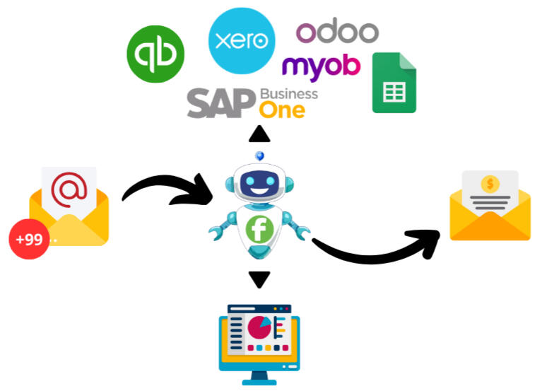 Link Flowzy to your inbox (Gmail, Outlook, etc.) and your ERP or spreadsheet (QuickBooks, Xero, Google Sheetsβ¦).